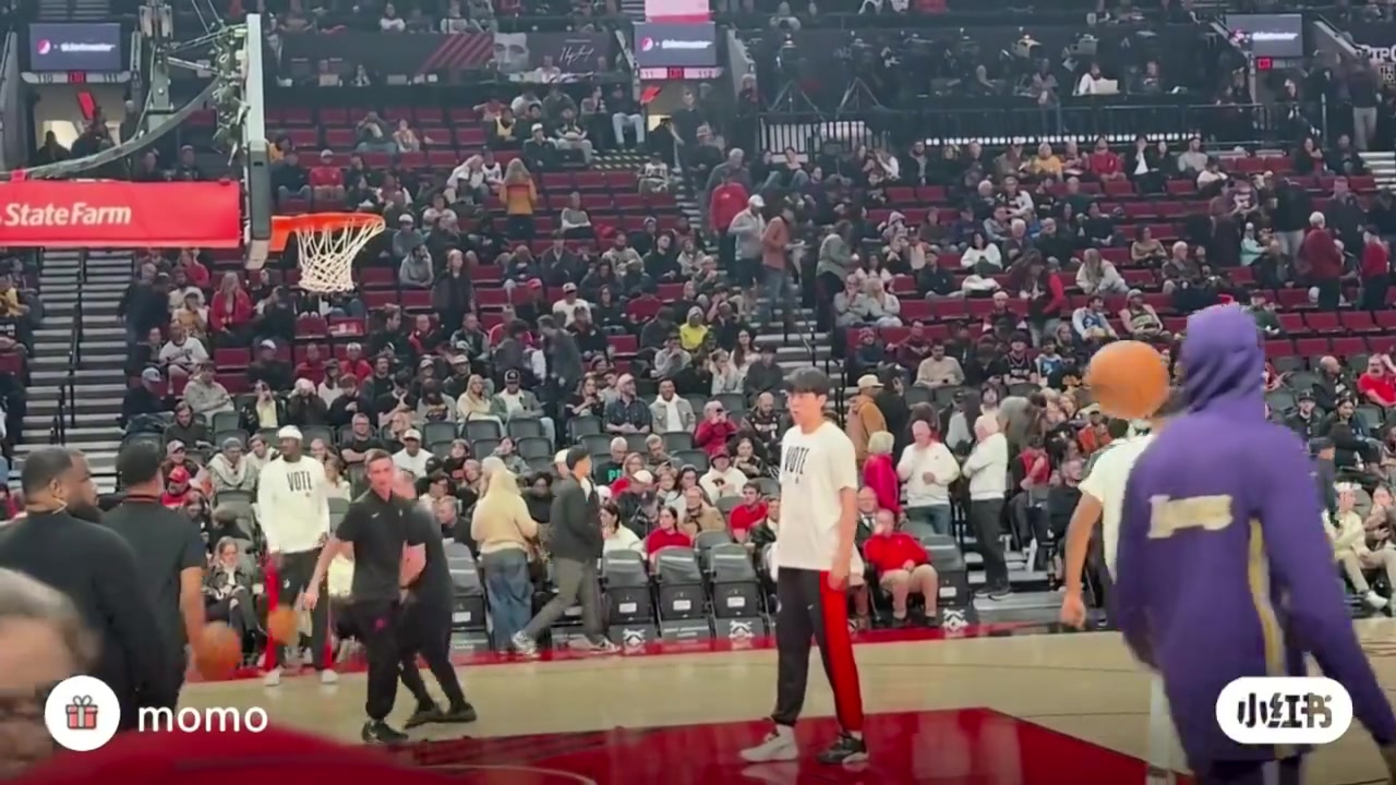 氛围好啊,开拓者官方晒杨瀚森训练中超远三分弹地一击命中